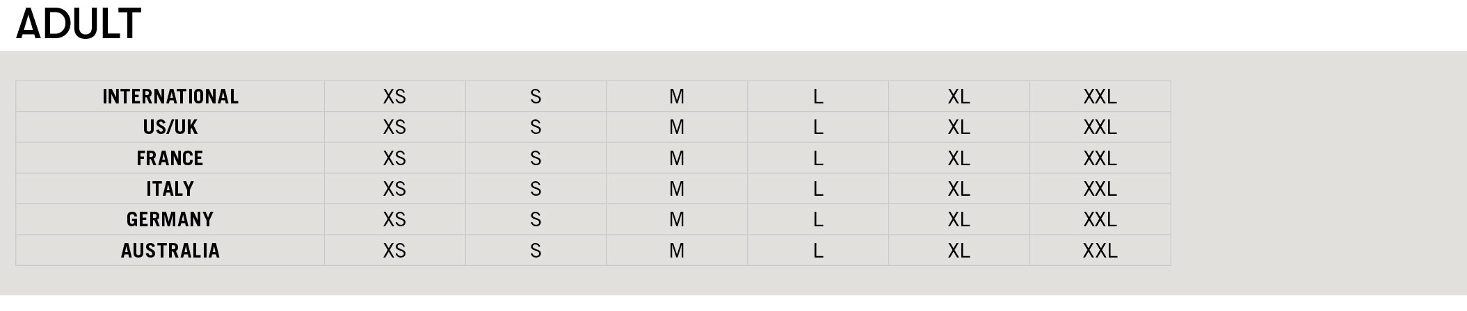 SIZING SYSTEM ADULT