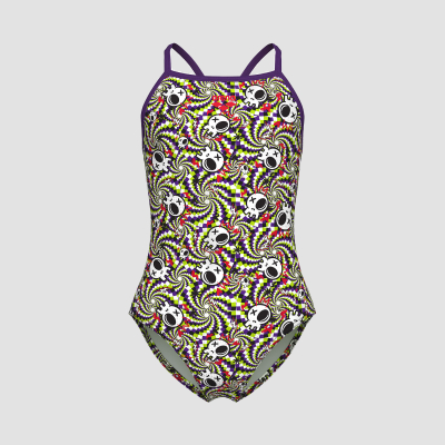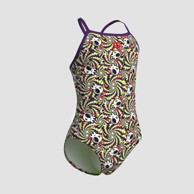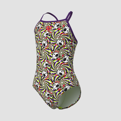 010284 - GIRL'S ARENA FUN SKULLS SWIMSUIT LIGHTDROP BACK L