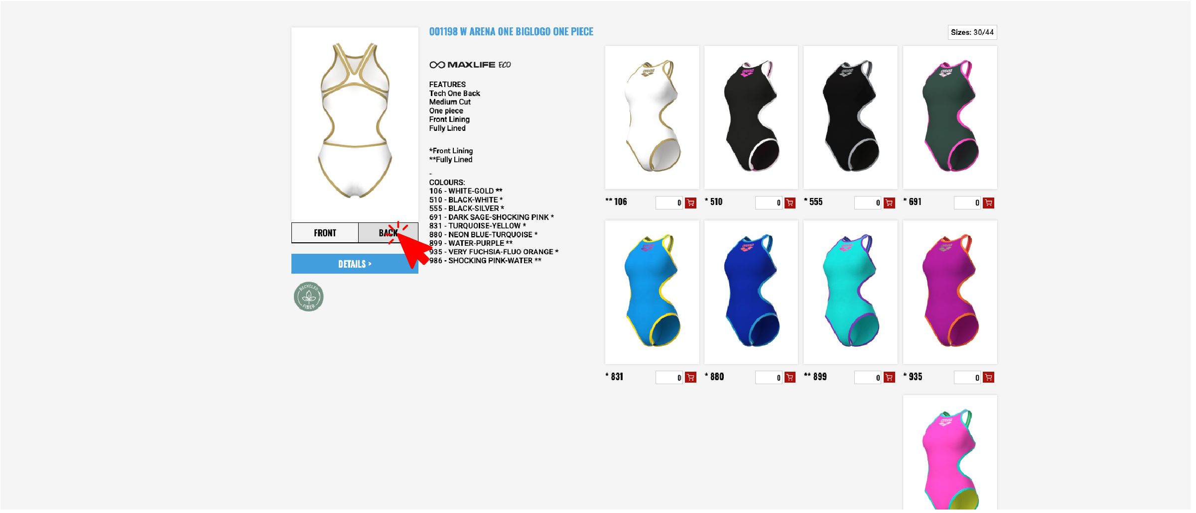 Pour procéder à la commande, vous pouvez cliquer sur l'icône en forme de panier présente pour chaque couleur disponible.
