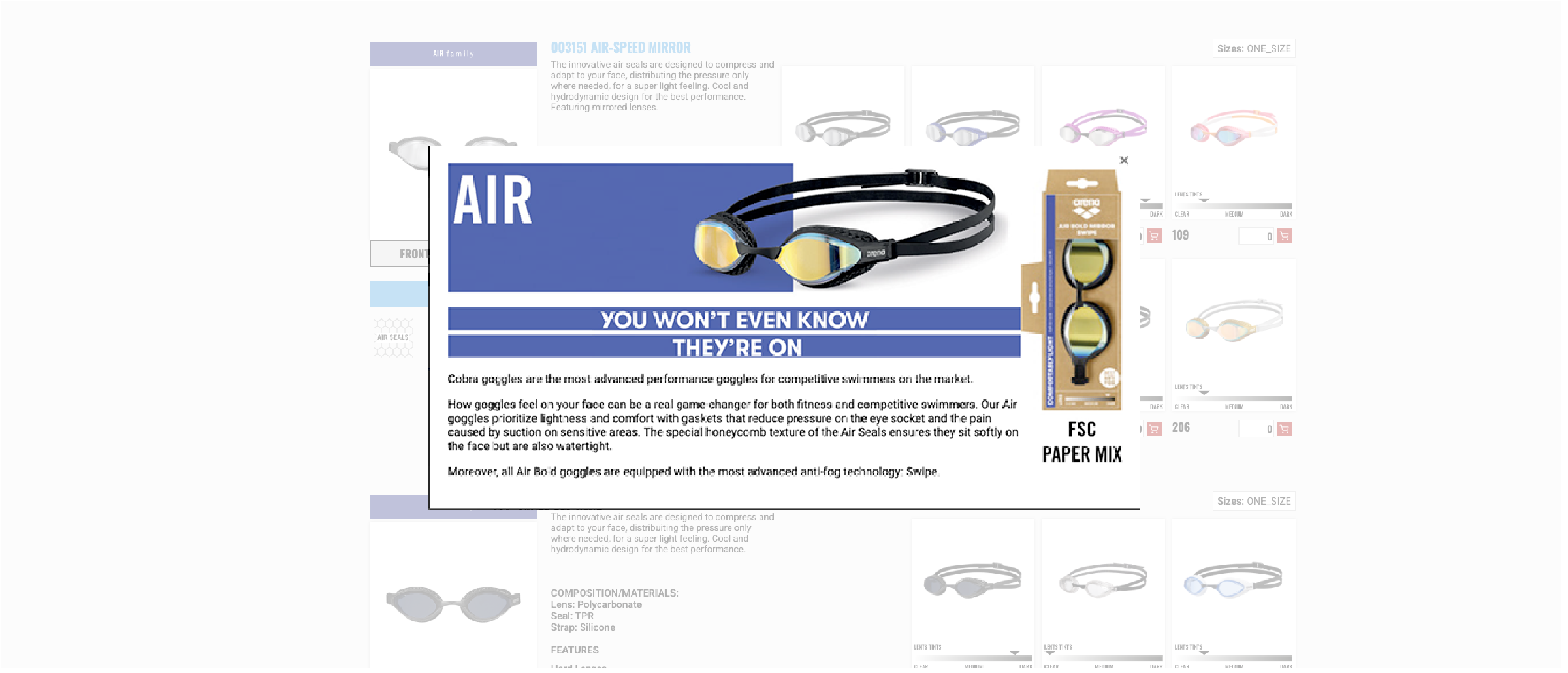 Dans les fiches produits qui prennent en charge la division en familles (lunettes), cliquer sur l'étiquette dédiée affichera une fenêtre contextuelle contenant des informations supplémentaires relatives à la famille elle-même.