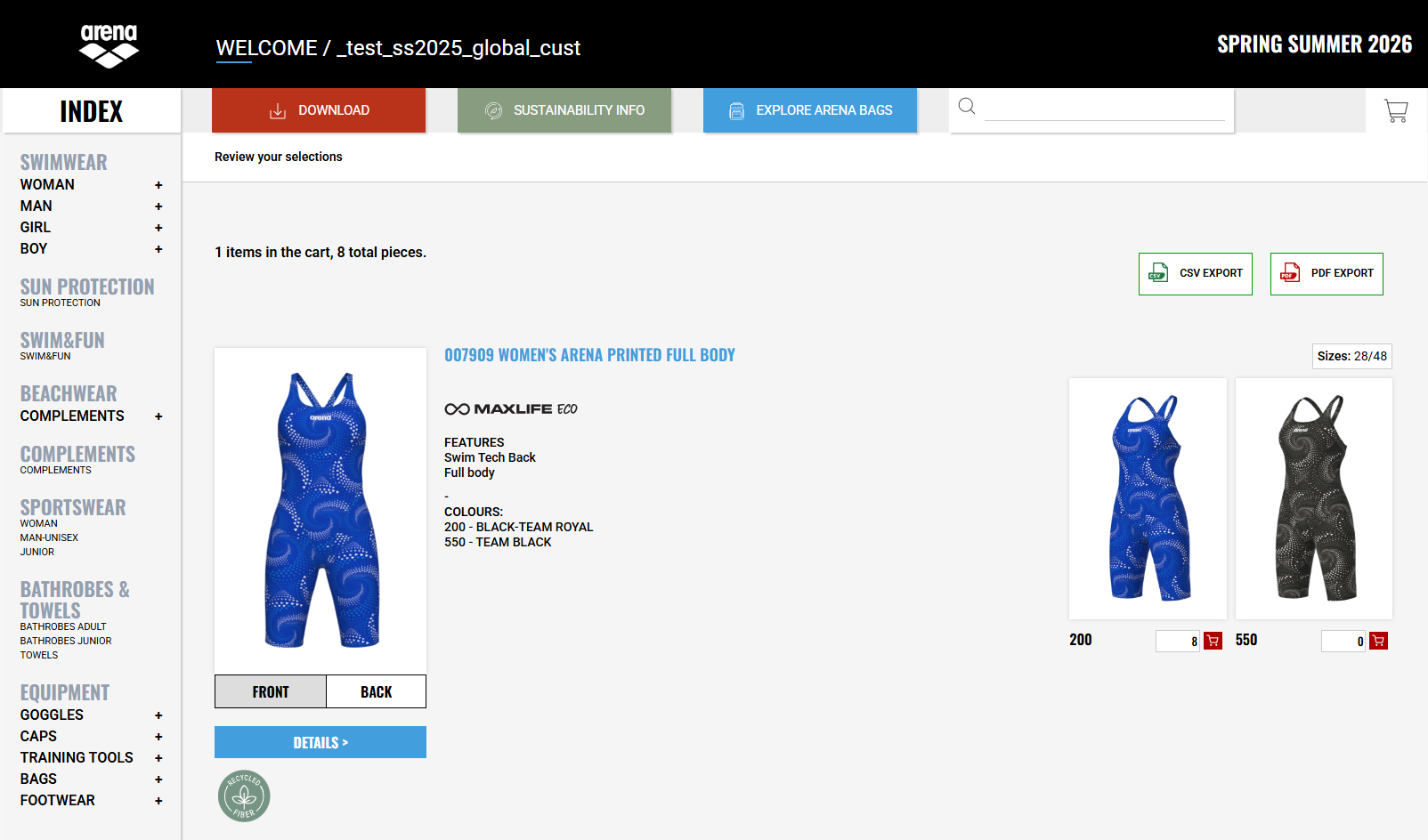 Bienvenue sur le nouveau site Web du catalogue numérique ARENA pour la saison SS2026. Ce manuel illustre les fonctionnalités de la zone frontale pour tous les clients.