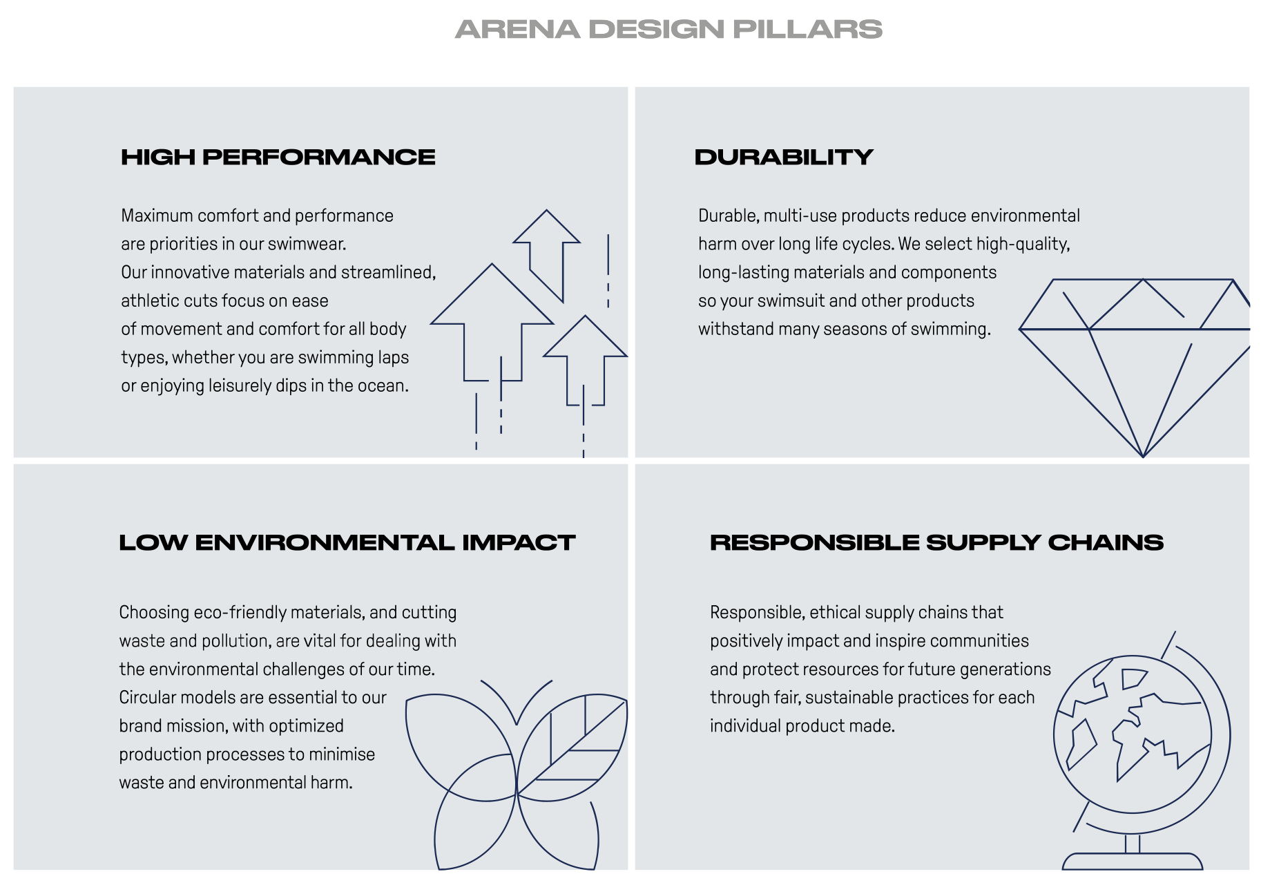 arena’s products are designed to help and inspire people to be active and to move towards the best version of themselves by being healthier and connected to nature.